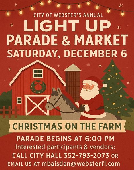 JOIN US FOR THE 2025 LIGHT UP WEBSTER CHRISTMAS PARADE & MARKET! SATURDAY DECEMBER 6TH!